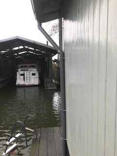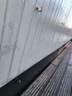 22 en 24 november. Verder gemonteerd en alle hulphout zit. Ook alle platen tot en met de deur zitten definitief. Er moeten nog 2 platen aan het einde worden bevestigd. Ik heb ook 1,5 meter van de compleet doorgerotte rechtervloer binnen vervangen (28 mm vloerdelen), want dat is de basis voort de onderregel. En dan nog wat schilderwerk en de Oostkant is klaar. De dakgoot veroorzaakt problemen. In het midden is hij doorgezakt, waardoor water op de wand plenst. De goot moet worden vastgezet in de originele positie. De afvoerpijpen zorgen voor spatwater op de wanden, waardoor rotting is ontstaan op de hoeken. Wellicht platen kunststof op de hoeken monteren. Voor een andere vorm van hemelwaterafvoer zie ik zo geen mogelijkheden. 29 november is de oostkant constructief klaar, het botenhuis is weer helemaal afgesloten. De laatste twee weken kon je door de open strook van de plint naar binnen kruipen. Dat heeft gelukkig niemand gedaan. Er wordt nu geschilderd. 3 december Panelen voor de westkant en het restant hulphout geverfd.Toch gekozen voor een lange regenpijp naar beneden en geen kunststofplaten. 8 december Met Jeroen de regenpijp aangebracht. Jeroen heeft de dakgoot gerepareerd door losse klossen vast te zetten. Aan de westkant begonnen door rotte schroten te vervangen en op plinthoogte af te zagen.
