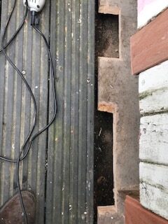 20 december Nog wat schroten vervangen. Over drie panelen (7,5 meter) afgezaagd en onderkant in de epoxy gezet. Twee stukken vloer vervangen die aan de zijkant waren ingerot.